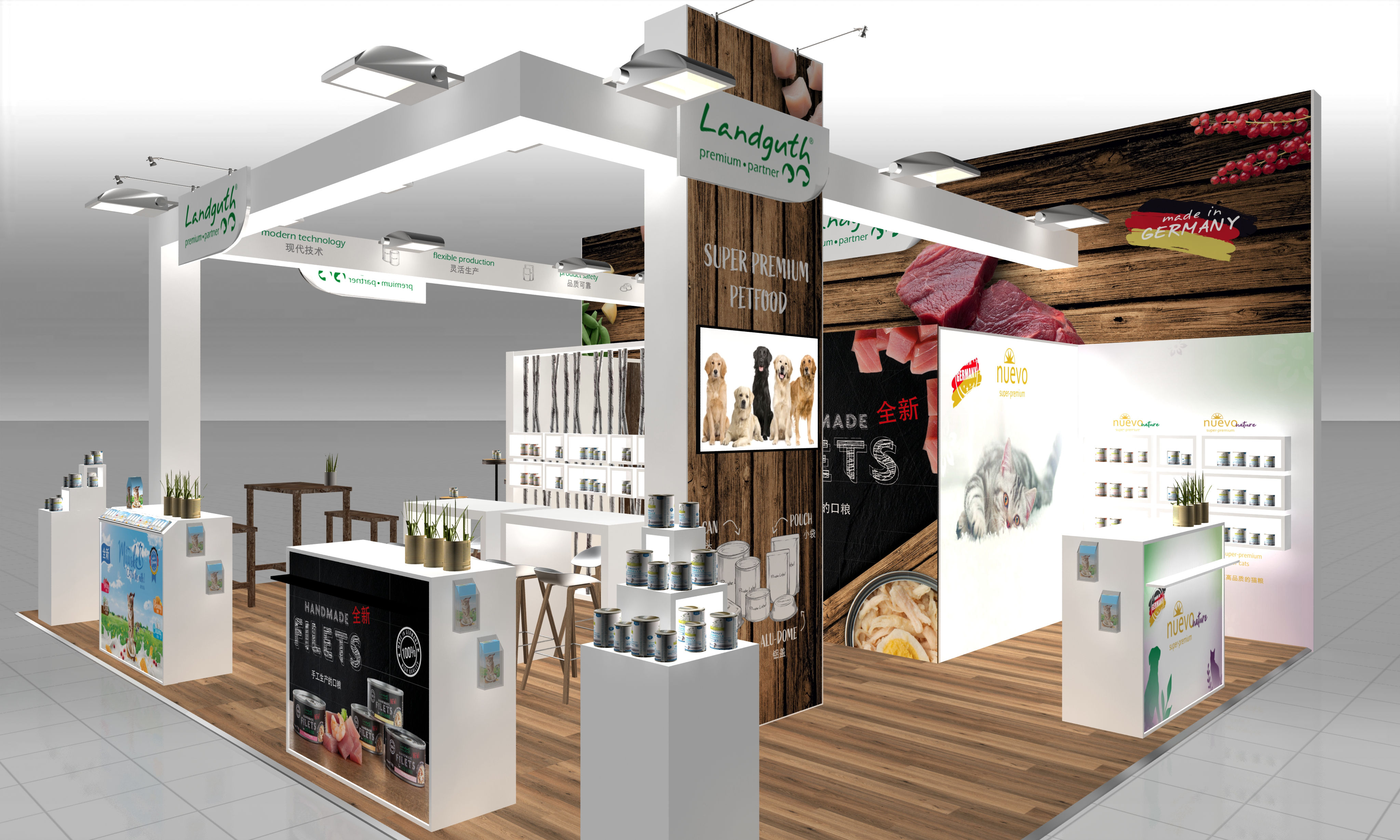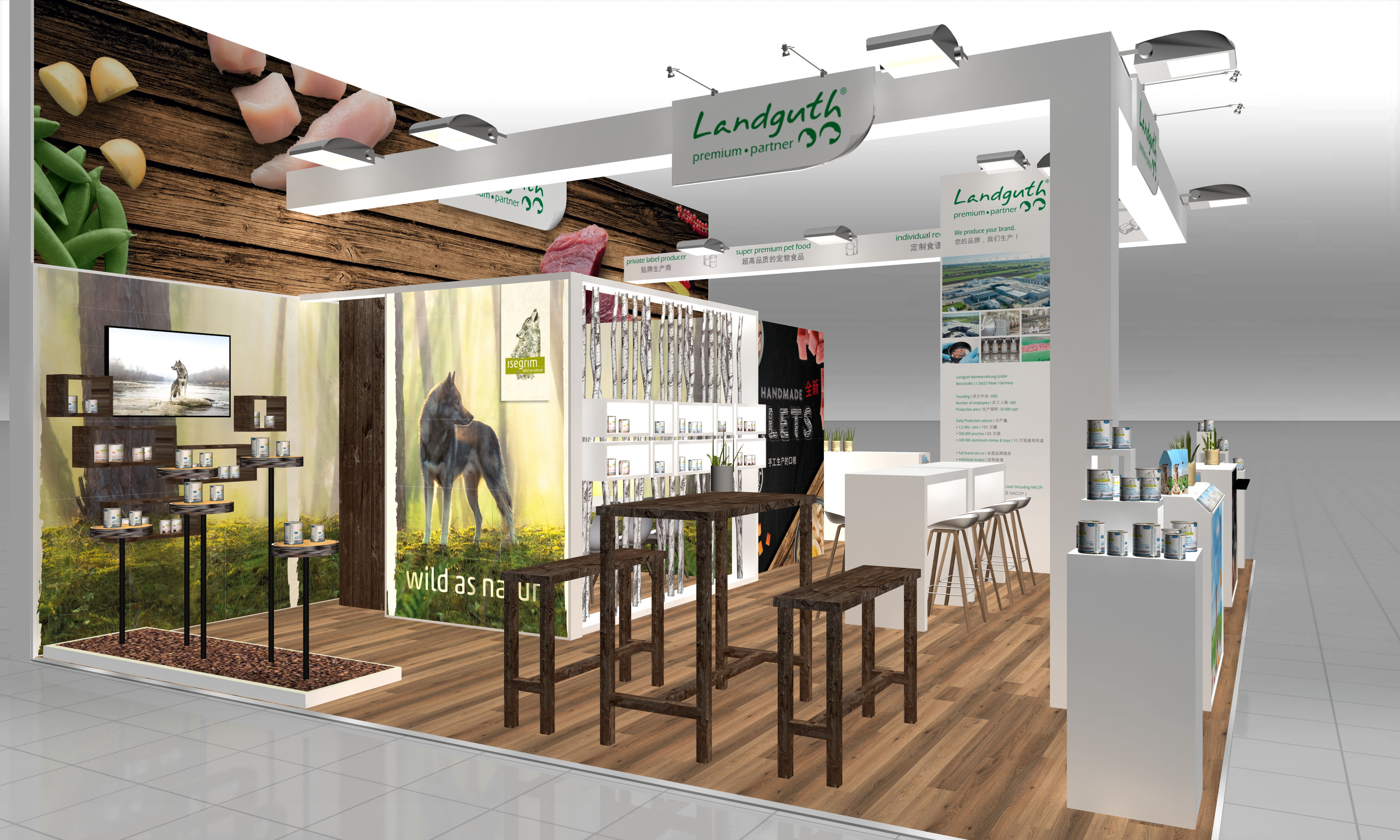 Im Auftrag von Fairdesign Messebau konnte maravilla bisher Messen für Landguth auf der Interzoo, Zoomark, Dog Fair und der China International Pet Show designen.
